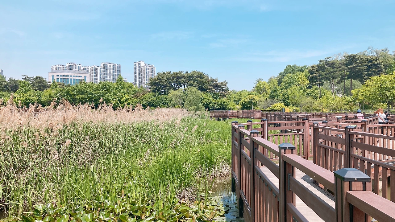 밖으로 나와 발길 닿는 데로 슬슬 걷는다. 중간중간 나무데크도 있고 물에는 갈대들도 서있다. 곳곳에 시냇물도 흐르고 오월이다 보니 풀도 어느 정도 우거졌다. 여기저기 의자도 많았다. 평일 오전이다 보니 주로 나이가 조금 있는 분들이 많았지만 어느 유치원에서 단체로 소풍을 나왔는지 유치원 아가들과 선생님이 계속 눈에 띄었다.