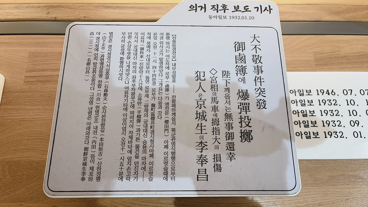 그리고 이봉창의사 흉상과 선언문이 서있는 곳 발자국 앞에 3초 이상 서있으면 선언문을 읽는 목소리가 자동으로 흘러나왔는데 신기했고 가슴이 웅장해져 왔다.