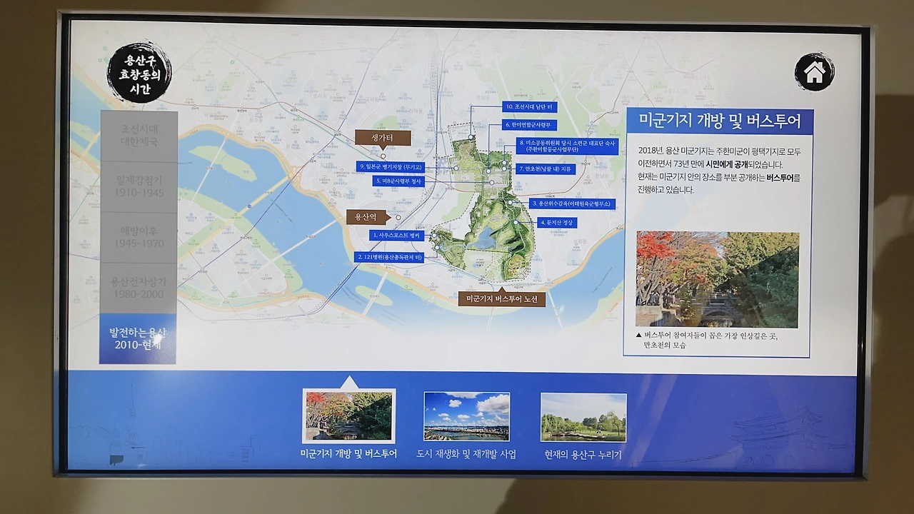 용산구에 대한 소개를 하는 코너가 있었다. 그러고 보니 내가 직전 2년을 용산구에 살았었구나. 그래서 방금 버스 타고 살던데 지나왔었지?