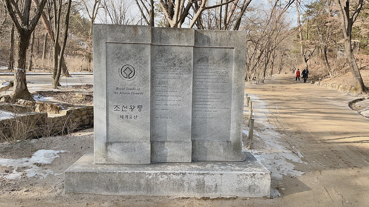 조선왕릉 40기는 유네스코 세계문화유산으로 지정되어 있다. 그래서 그것에 대한 비석도 있고 문화재청 안내 플래카드도 있다. 내가 전직하려는 업종이 문화재청과 아주 관련 없는 건 아니기 때문에 괜히 또 두근두근. 조금 걸어 들어가니 여기는 산책 나오신 할머니, 할아버지들 천지다. 그나마 젊어 뵈는 사람은 나밖에 없는 것 같다. 게다가 햇살이 잘 드는 곳에 의자도 엄청 많이 놓여있다.