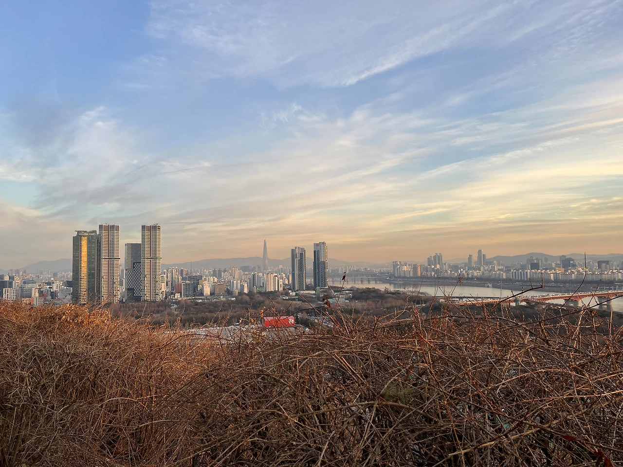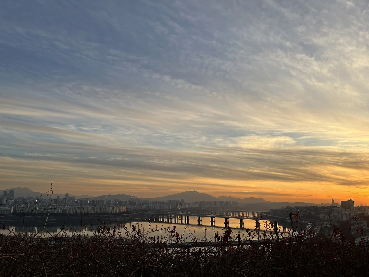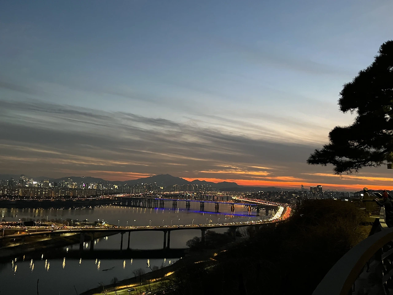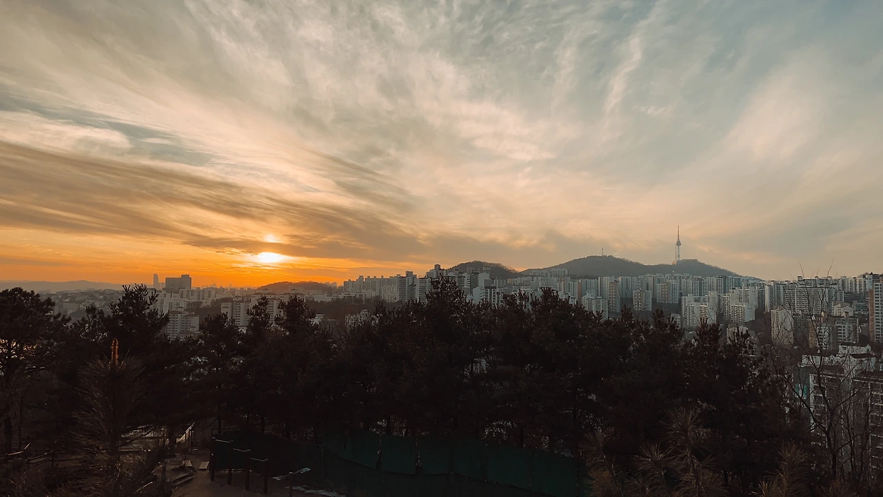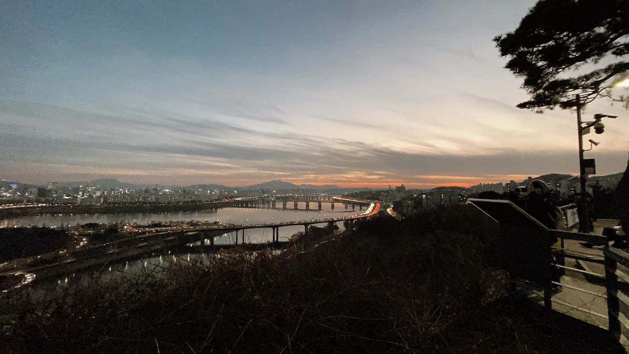 오늘 날 진짜 잘 잡았다. 구름도 적당하고 날도 그렇게까지 안 추웠고 노을이 막 지고 있었다. 서울 시내와 한강이 전부 다 내려다보였다. 이 정도면 충분히 올라올만하다. 노을로는 가성비 최고다.
