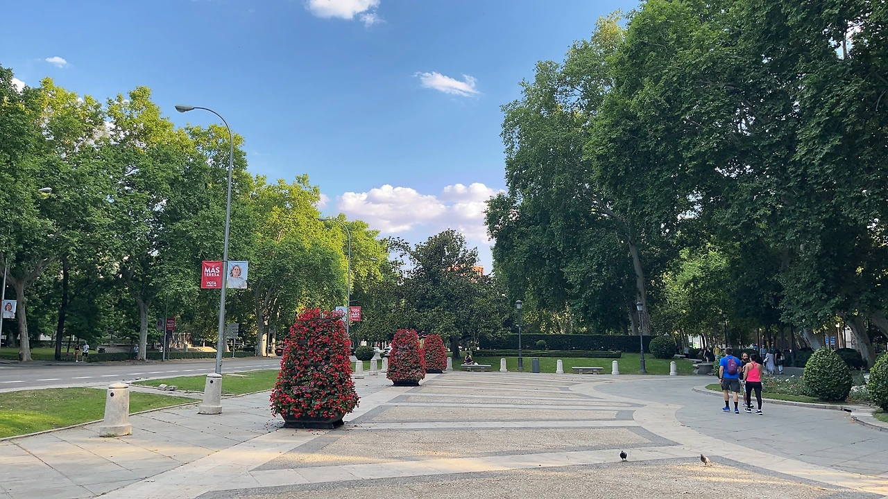 배도 부르고 술도 한 잔 했겠다 근처 시벨레스 광장에 조성되어 있는 큰 대로변 공원에 가기로 했다. 음악 들으면서 슬슬 걷기. 그늘져서 딱 좋네.