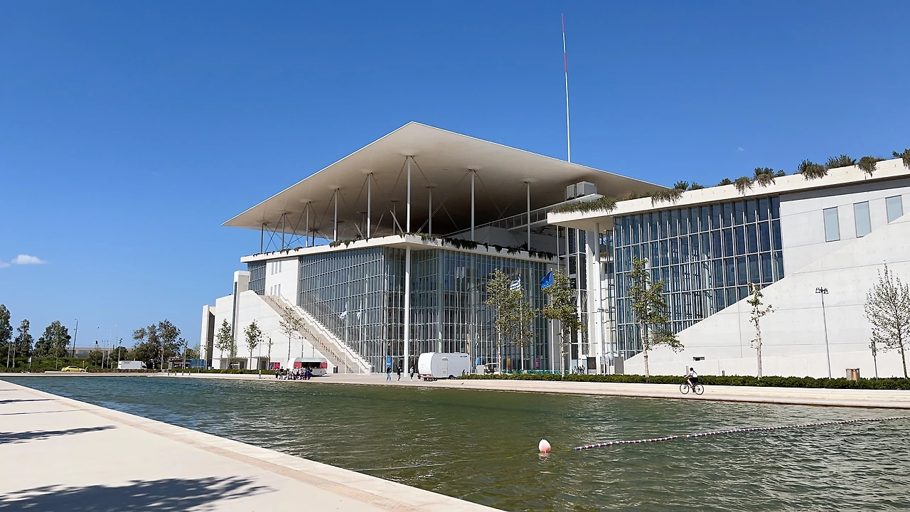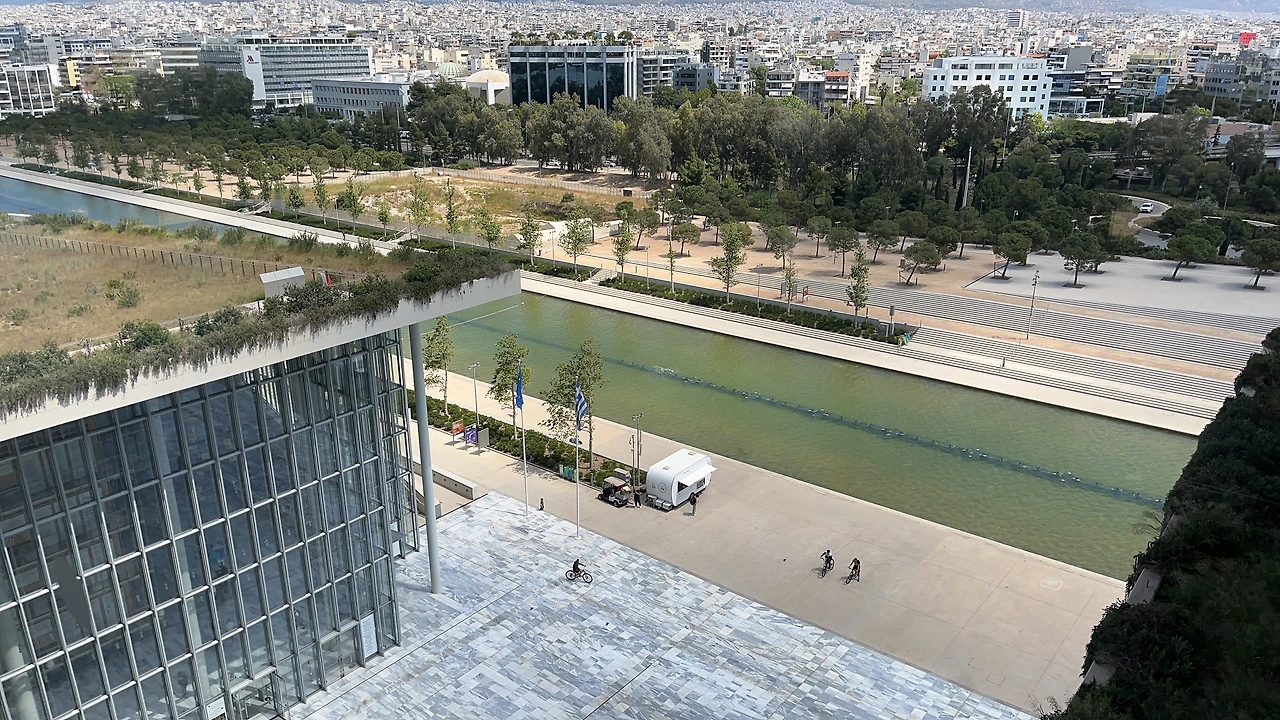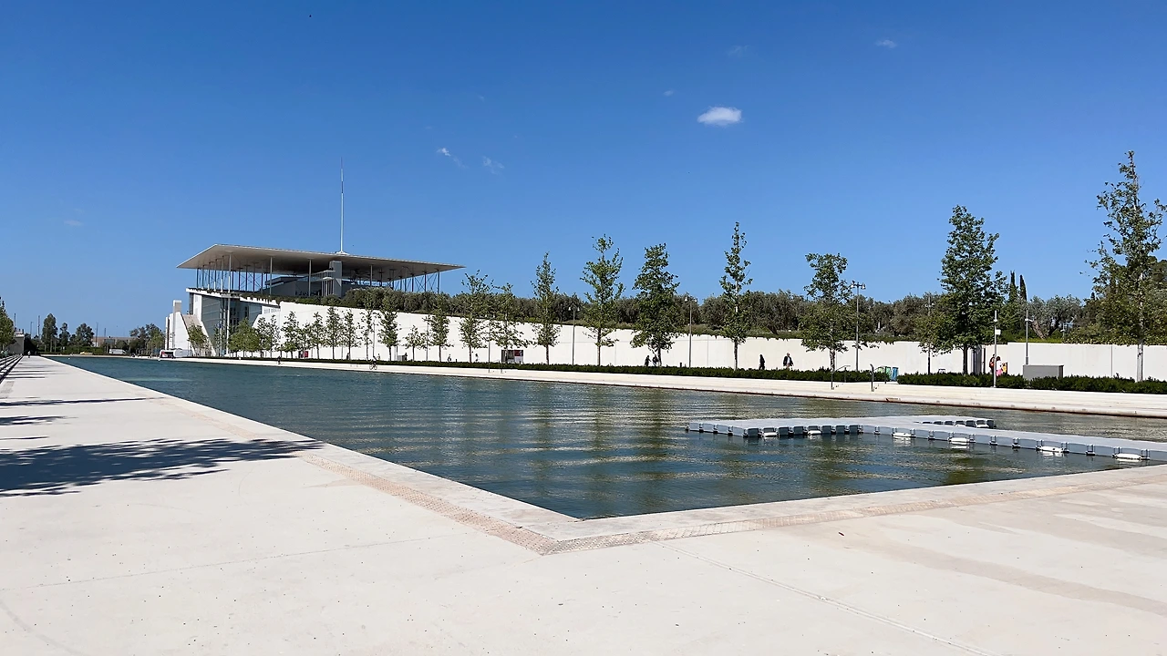 이제 오늘의 진짜 목적지인 그리스 국립도서관을 향해 간다. 버스를 타고 하차해 지도 보고 걷다가 어느 순간 광장이라고 해야하나 조정경기장 같은 곳이 있길래 신기해서 거길 따라가다보니 저쪽 건너편에 멋드러진 건물이 하나 보였다. 누가봐도 그 근방에 눈에 띄는 건물은 그거 밖에 없어서 뭔가 싶었는데 그게 바로 도서관과 오페라하우스 건물이었다.