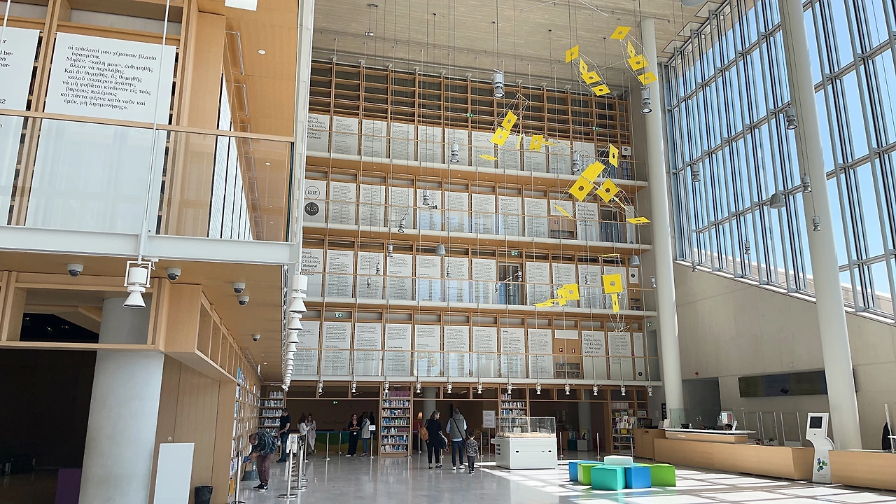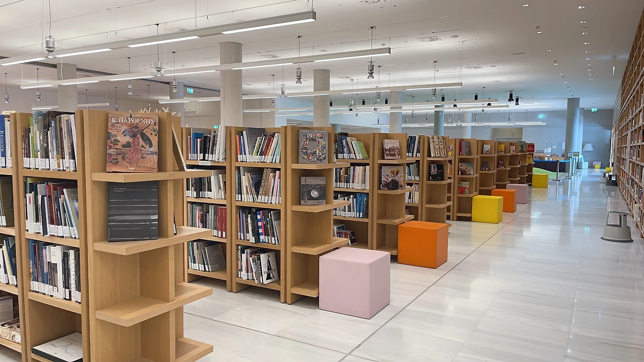 도서관은 3층까지인데 열람실, 독서실, 컴퓨터실도 있었고 그 외 공용공간도 넓고 편한 의자도 놓여있었다. 전체적으로 탁 트이고 넓고 여유로운 느낌이라 좋았고 3층에는 상설전시도 하고 있었는데 그리스의 무대설치와 화가이기도 한 작가 Marilena Aravantinou의 전시였다. 사진을 찍어도 된다고 해서 마음에 드는 그림 사진을 찍으며 천천히 구경했다. 하지만 아무리 사진 앱으로 사진을 찍어도 내 눈에 비치는 색감보다 못하게 나왔다.