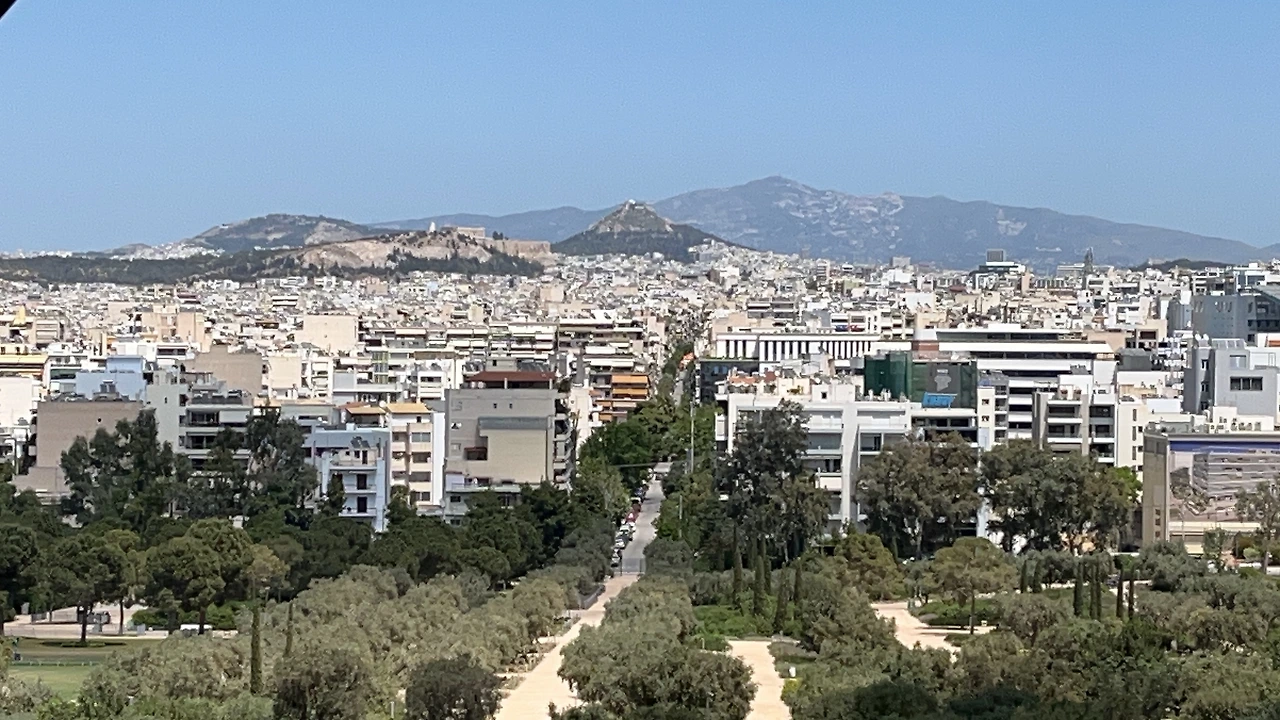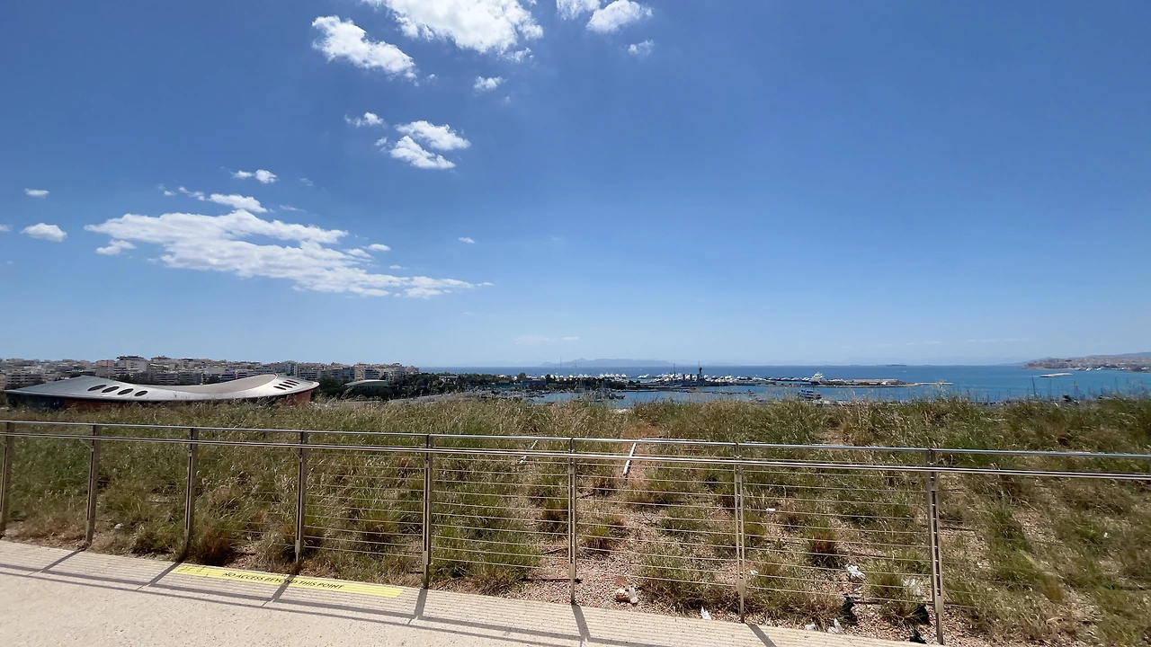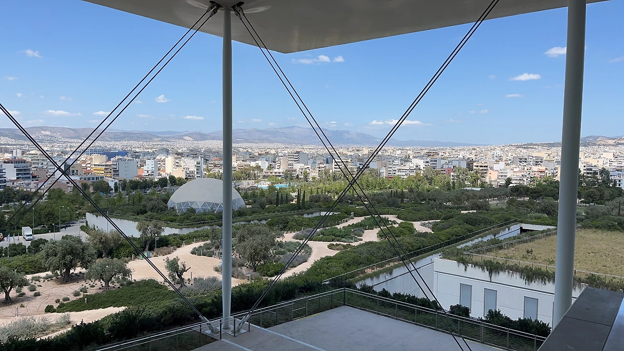 그리고 건물 옥상에 올라가고 싶었는데 도서관 말고 중앙 통로로 들어가니 옥상으로 올라갈 수 있었다. 아테네 시내가 다 내려다보이고 심지어 저 멀리 아크로폴리도 보인다. 시내에서 조금 떨어져 있긴 했지만 오길 잘했다. 보니까 여기서 쭉 내려가면 정원을 따라 내려가는건데 날도 덥고 또 어디로 나갈지 모르니 일단 다시 밑으로 내려왔다. 평일이라 사람이 많지 않았지만 현지인들이 많이 오는 주말엔 북적댈 것 같다.