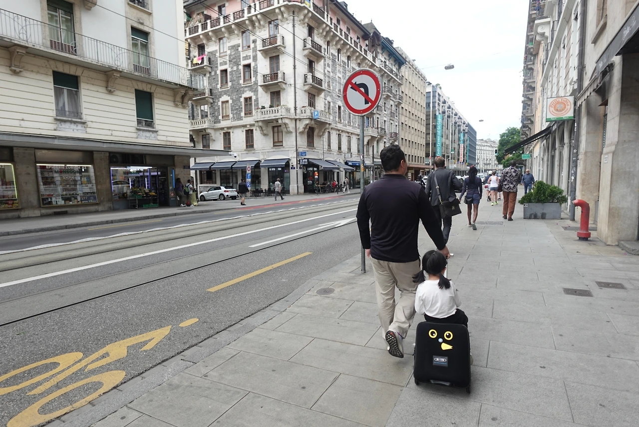 호텔은 무조권 기차역 근처에 잡아서 짐 들고 다니는 동선을 줄였고, 돌아다닐 때는 애를 태우고 이동할 수 있도록 나온 기내용 캐리어를 유용하게 썼다. 다른 나라는 몰라도 스위스는 유럽 구시가지 특유의 돌바닥이 그나마 많지 않은 편이다.