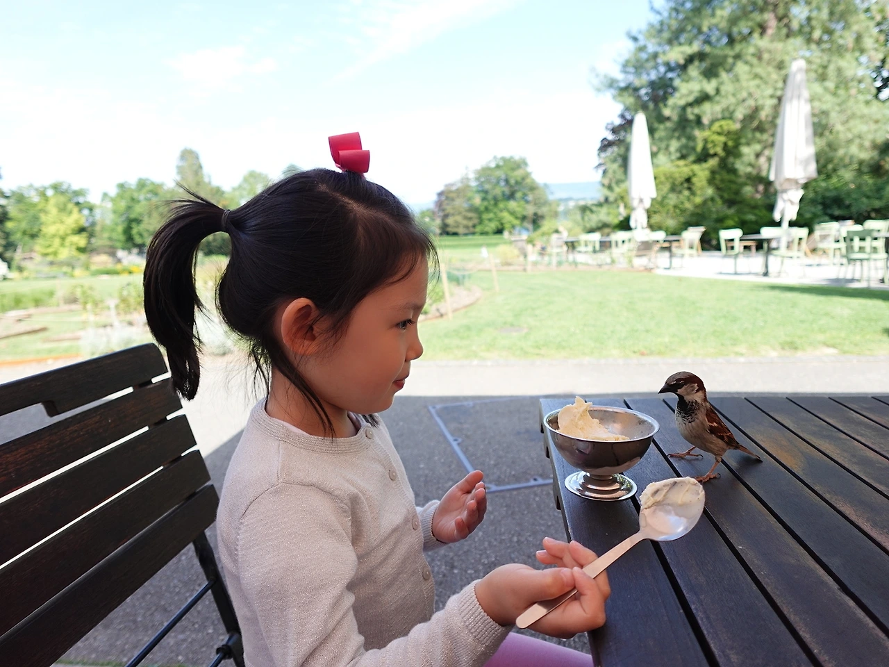 아이는 지금도 스위스에서 깔깔거리며 웃었던 때를 회상한다. 공원에서 아이스크림을 먹다 참새가 날아와 한입 뺏어먹은 일, 산책을 하다가 맞은편에서 오는 강아지가 내 다리에 박치기 한 일, 해변에서 수영하다가 갑자기 소나기가 내려서 돌아오는 길에 비를 쫄딱 맞은 일…