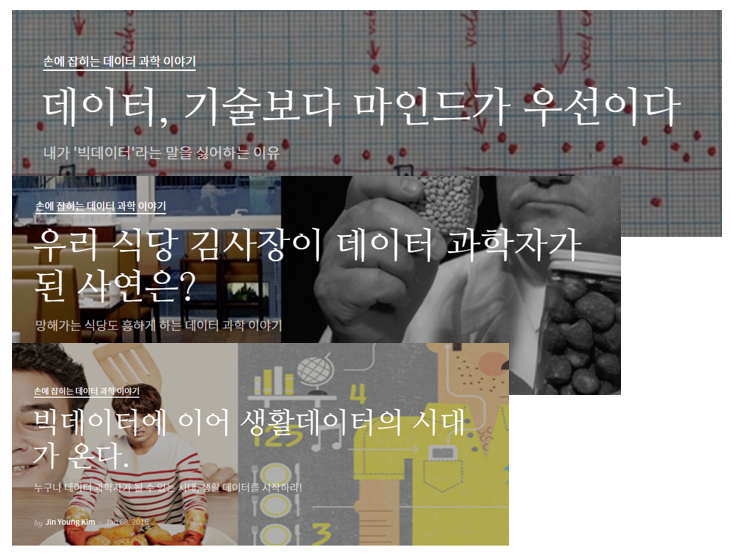 그러다가 박사 학위를 받고 전공 분야였던 검색 데이터를 다루는 업무를 시작했다. 일을 시작한 지 삼 년, 업무가 어느 정도 손에 잡힐 무렵 그동안 배운 내용을 기록하기 시작했다. 업무상으로 빅데이터의 대표 격인 검색 데이터를 다루고 있었지만, 나 자신의 행복도 등 다양한 개인 데이터 프로젝트를 수행하며 스몰 데이터의 다양한 가능성을 발견했다. 따라서 내 글의 주제는 주로 데이터라면 뭔가 거창하고 어려운 것이라는 통념을 깨는 것이었다.
