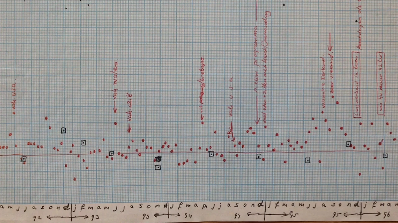 마지막으로 커버로 사용한 그림에 대한 설명을 덧붙이고자 한다. 이 그림은 자기 삶에서의 데이터 활용 사례를 공유하는 커뮤니티인 Quantified Self의 암스테르담 모임에서 스테판 호베너라는 사람이 발표한 비디오에서 따온 것이다. 스테판의 아버지는 당뇨병 환자로서, 자신의 병력을 아래와 같은 모눈종이에 수십년간 기록해 왔다. 자신의 식사 및 투약 기록을 꾸준히 기록함으로써 큰 탈 없이 자신의 질병을 관리하며 비교적 건강한 삶을 살아올 수 있었던 것이다.
