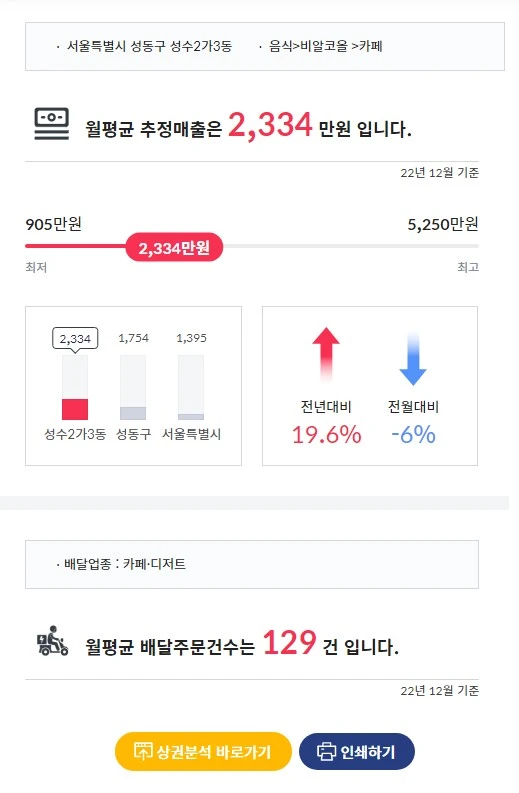 성수2가3동의 카페 상권분석이 제공됩니다.