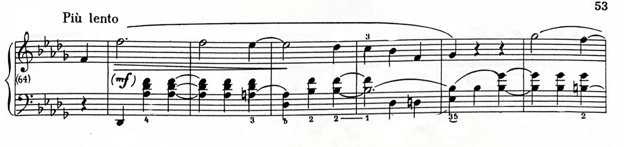 C# 마이너에서 Db메이저로 바뀌는 렌토. 피아노에서 보자면 C#과 Db는 이명동음으로 같은 소리이나 이름만 다를 뿐인데 악보상으론 샾이 4개에서 플렛이 5개로 바뀌었다는 지각대변동처럼 느껴진다. 오랜 시간 연주해도 이렇게 조표가 크게 달라질 때는 순간 헛갈려서 연습하면서 그냥 소리로 외운다. (참고로 상대음감이다. 슬프다.) 악보를 빨리 안 보는 편이 편하다. 슬픔의 끝에서 울음을 닦고 진정하는 렌토파트. 그러나 곧 다시 마이너 단조로 돌입하고 소용돌이 속에서 끝난다. 우울한 기분에 아주 적절한 곡이라 할 수 있겠다. 처음이나 지금처럼 여전히 사랑하는 프랑수아.