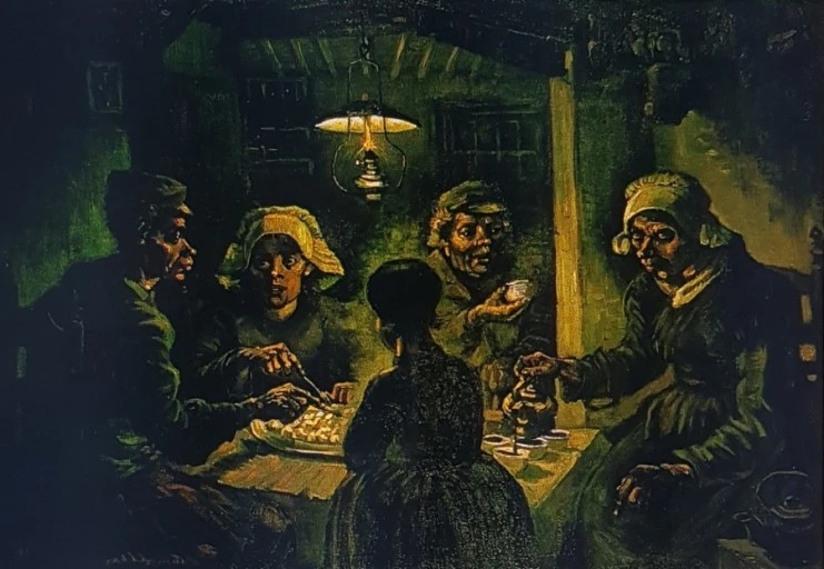 그런 서민층의 삶을 그려낸 반 고흐의 그림들을 보면, 마치 그들의 고통과 아픔을 같이 느끼고 있는 듯한 애정 어린 시선들이 보인다. 그들의 어려운 삶에 대한 애환과 어두운 심정을 공감하는 것 같은 그런 분위기나 디테일한 느낌이 그림 전체에서 물씬 풍겨져 나오기 때문이다. 비록 겉으로는 보잘것없어 보이는 소박한 일상처럼 보이지만 그들의 가난한 삶과 힘겨운 노동에 대한 가치를 알아보는 반 고흐의 여러 작품들 중에서도, 그의 이런 시선을 매우 잘 느낄 수 있는 작품들 중 하나가 바로 그 유명한 ‘감자 먹는 사람들’ 일 것이다.