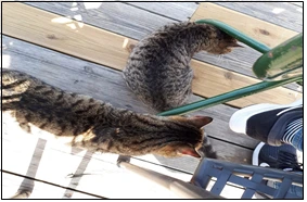 나는 당황스러운 기색을 감추지 못하고 갑자기 몰려든 그 고양이들을 다른 곳으로 보내려고 애를 쓰고 있었는데, 그 카페에 있던 주변의 많은 다른 사람들은 나랑 정반대의 모습들을 하고 있었다. 서로 몸집의 크기는 달랐지만 엇비슷한 색상이었던 그 한 쌍의 고양이들이 신기했는지, 자꾸만 관심을 가지고 귀여워하면서 다들 조금이라도 친해지려고 다가왔던 것이다. 카페에서 팔고 있던 고양이 전용 간식까지 사서 주는 사람들도 있었다. 어두운 갈색 빛깔의 고양이들은 그렇게 인기 스타처럼 카페 사람들한테 사랑을 한가득 받고 있었는데, 그 녀석들이 모두 나한테 다가와서 그 자리를 절대 떠나지 않고 계속 맴돌고 있었다.