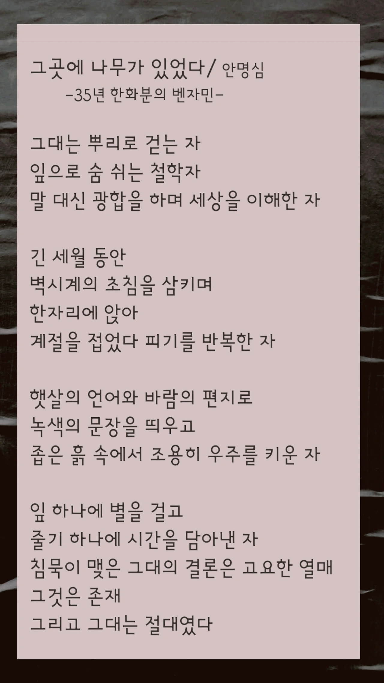 나무 앞에 서니 괜히 말이 줄어들고, 자연스레 고개를 한 번 더 숙이게 되는 기분이 들었다,