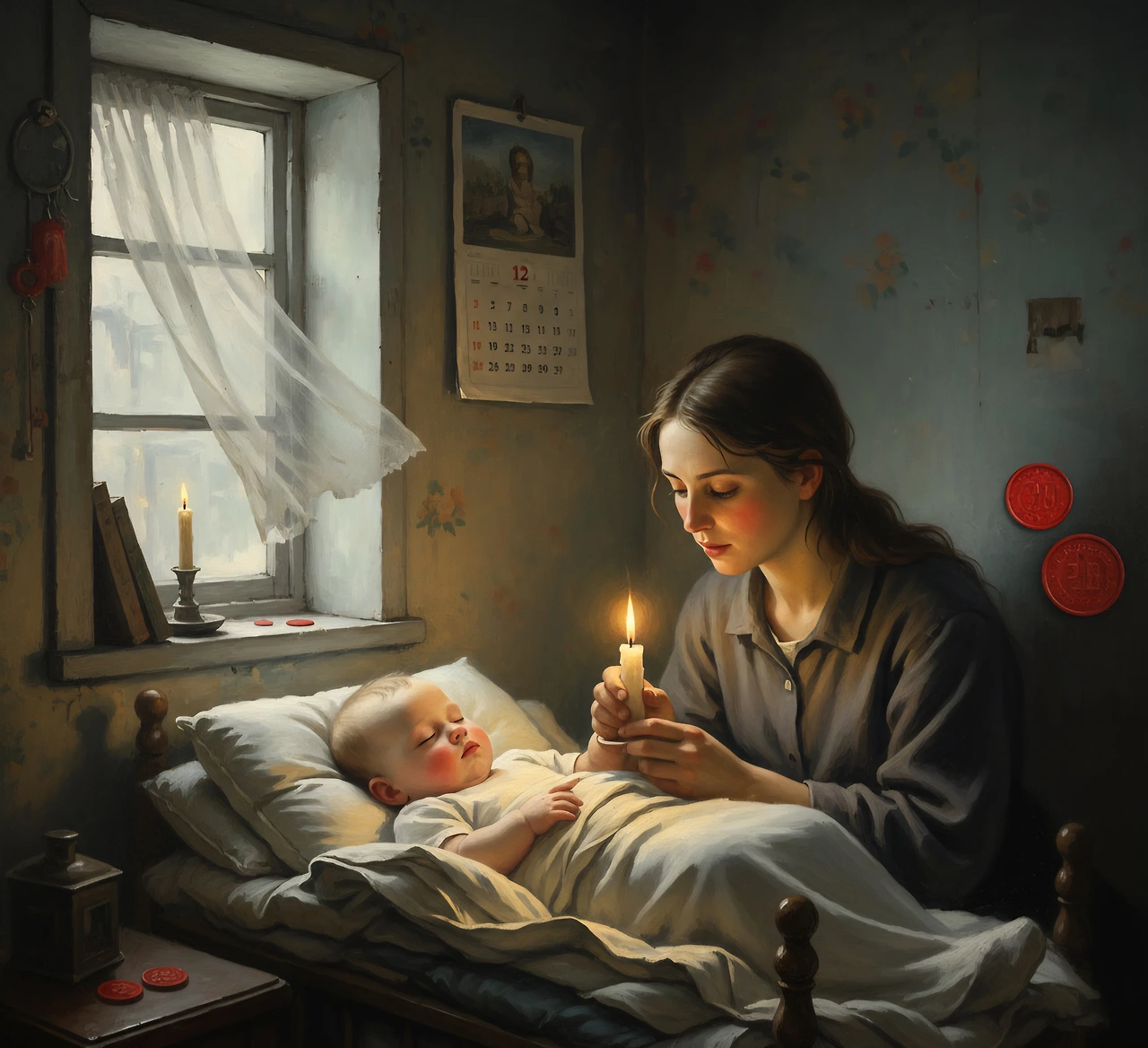 서툰 엄마의 손이 차가운 아기 이마에 닿았을 때 느껴지는 미약하고 간절한 체온의 경계였으며, 어떻게든 아이를 감싸 안으려 했던 그 밤의 막막함과 모정 뿐이었다.