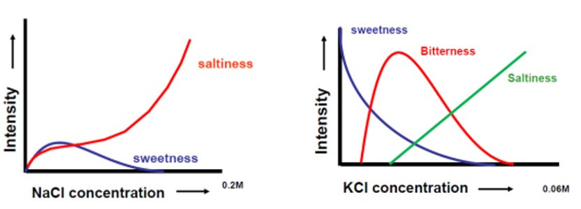 우리는 소금 맛에 대해 얼마나 알고 있을까? 현재까지 알려진 내용을 정리하면, 정제염은 99% 이상이 염화나트륨(NaCl)으로 짠맛만 있으나, 천일염의 경우 염화나트륨이 80~85%로 칼슘, 마그네슘, 칼륨 등을 함유하고 있어 좀 다른 맛을 낸다고 한다. 소금의 맛을 좀 더 깊이 연구한 논문에 따르면 약하지만 약간의 단맛이 존재한다고 한다. 낮은 농도의 소금용액의 맛 안에는 약간의 단맛이 존재하는데, 농도가 높아짐에 따라 짠맛 때문에 단맛을 점점 느낄 수 없게 된다. 소금의 대체재로서 사용되고 있는 염화칼륨(KCl)은 낮은 농도에서 단맛, 쓴맛, 짠맛이 함께 느껴지다가 농도가 높아짐에 따라 짠맛이 상승한다고 한다.