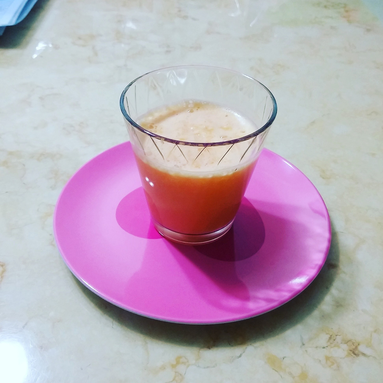 마지막으로 집에 있는 감귤을 라이스밀크에 넣고 갈아만든 감귤 스무디.