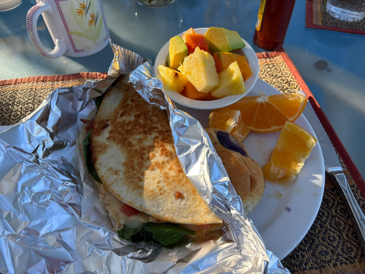 아침 8시, 조식 시간이 되면 우리는 2층 테라스로 올라갔다. 주인 부부는 우리 가족의 자리를 정성껏 마련해 놓고, 어른들과 아이들의 양에 맞추어 음식을 세팅해 주었다. 1월, 하와이의 아침은 꽤나 서늘했지만 아우터를 입고 따뜻한 커피 그리고 코코아와 함께 아침을 먹는 일은 꽤나 낭만적이었다.