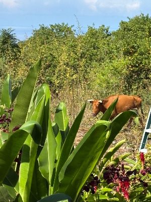 다른 테이블의 외국인이 우리에게 다가와한 곳을 가리켰다. '꿀꿀' 소리를 내며 산책을 하고 있는 엄마와 아기 돼지들이 지나가고, 한참 뒤엔 소 떼가 지나갔다. 저 멀리론 바다가 보이고, 눈 돌리는 모든 곳이 자연 그 자체인 이곳에 있다는 게 믿기지 않았다.