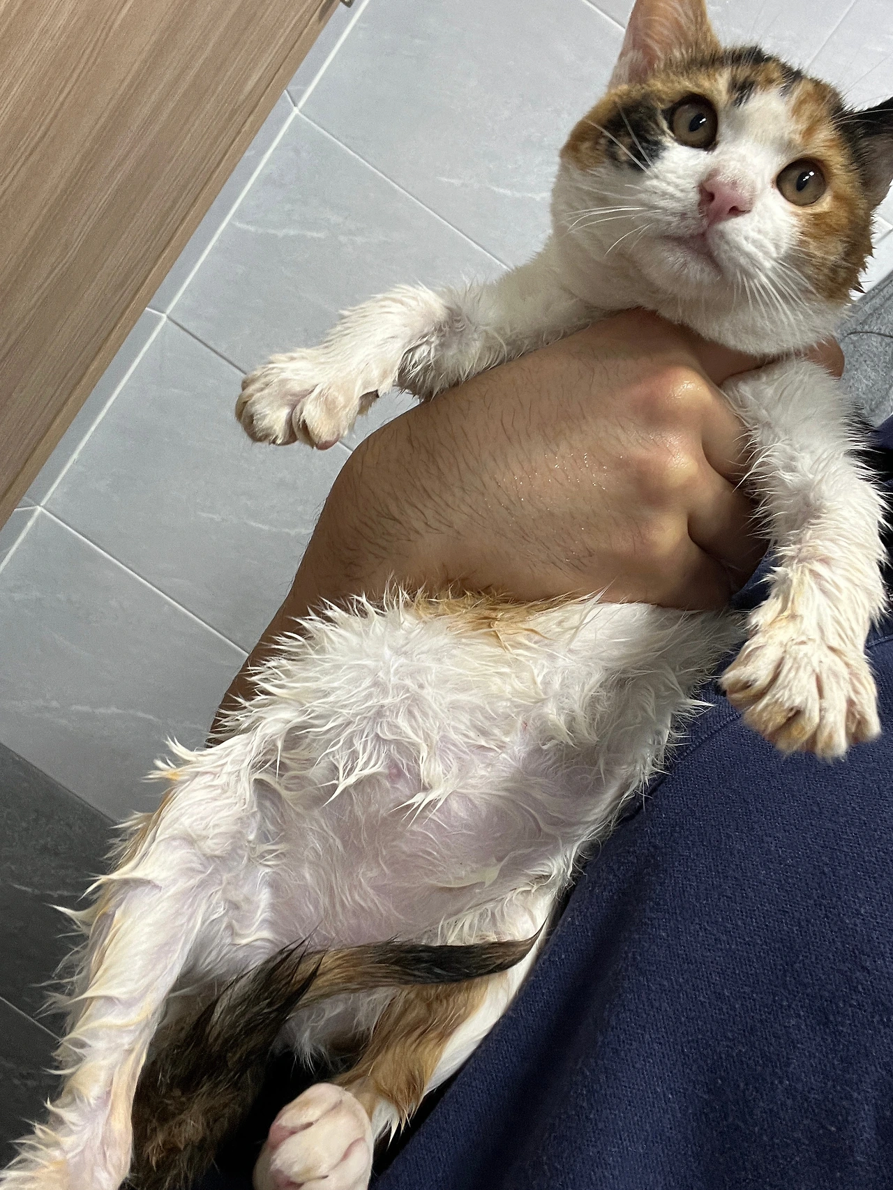 하지만 나는 문제가 생기면 해결하는 사람이다. 우선 어깨너머로 배운 대로 놈이 춥지 않게 온도를 조절했다. 아기고양이가 감기라도 걸리면 큰일이니까. 고양이전용 샴푸가 없었지만 나는 무언가 대체제를 찾아야만 했다. 욕실을 둘러보던 내 눈에 플라스틱 통 하나가 들어왔다. 엄니가 아주 아끼는 저자극 약산성의 비싼 바디워시 통, 사용하는 것이 아니라 전시용이라고 생각이 들 정도로 높은 곳에 고이 모셔진 닥터xxxx 바디워시를 과감히 짰다. 물론 그 사실을 엄니에게 말하진 않을 것이다.