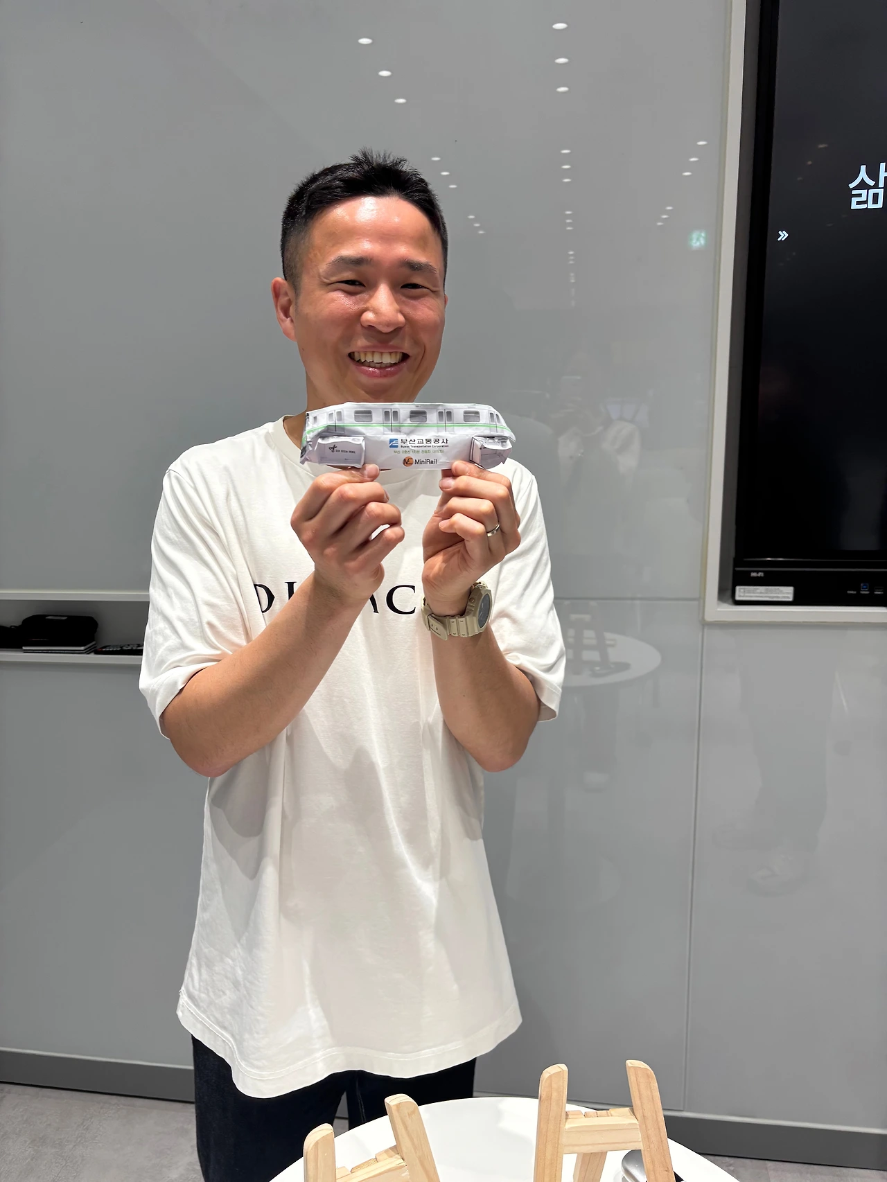 찌그러진 지하철을 조심히 받으며 말했다. “정말 고마워… 이런 선물은 처음 받아 보거든.”