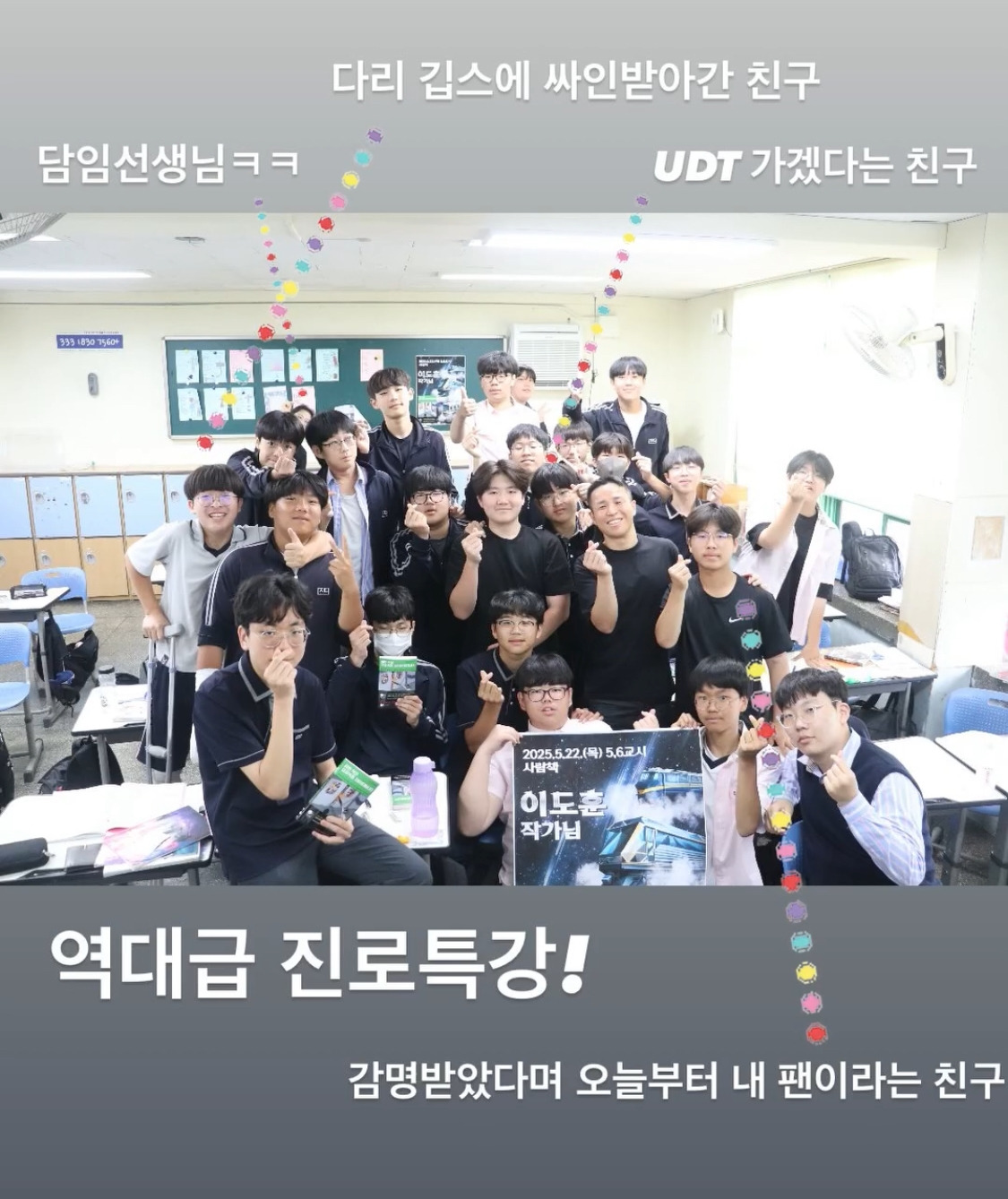 급기야 강연이 끝나고 자신이 신고 있는 크록스와 다리 다친 친구의 깁스에도 사인을 요청받았다.