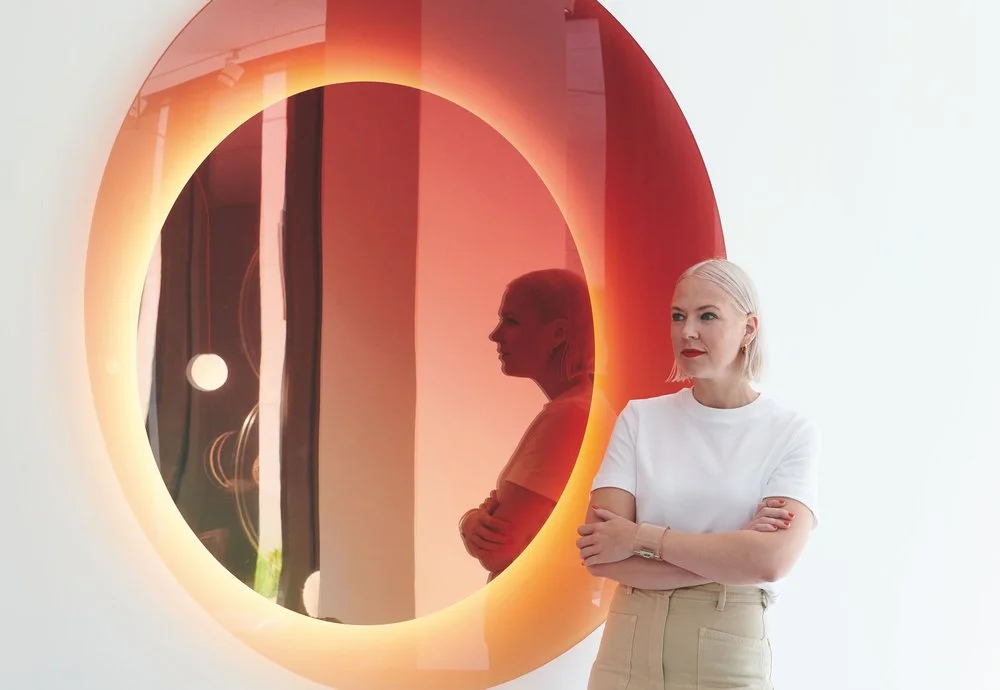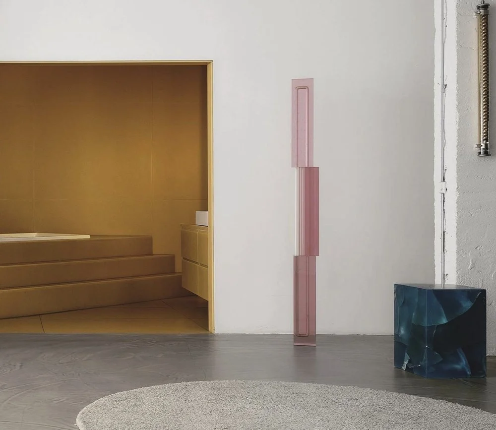 순수한 형태와 재료의 본질에 접근해 독특한 오브제를 만들어내는 디자이너가 있다. 네덜란드의 디자이너 Sabine Marcelis는 물과 빛이 만나 반사되는 형태, 산에 뒤덮인 눈, 하늘, 바다와 같은 자연 요소들 사이에서 이루어지는 소통에 관심을 가진다. 그런 자연물의 관계성을 순수 재료로 연구, 실험하여 그 물성을 가장 잘 보여주는 순수한 형태를 통해 표현한다. 그녀의 작품에서 레진과 유리가 주재료로 자주 등장하는 이유도 바로 자유자재로 형태 구현이 가능하면서도 다양한 마감을 표현할 수 있기 때문이다. 2018년 Side Gallery를 위해 특별히 준비한 플로어 조명 Totem은 이런 재료들이 상호작용하며 만들어내는 효과를 매력적으로 보여준다.