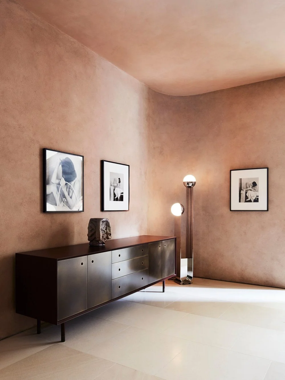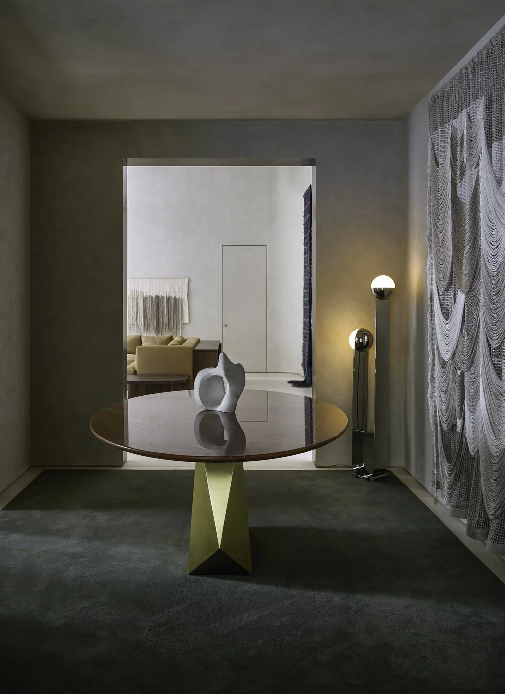 두 개의 구체가 곧은 선으로 내려와 드라마틱한 곡선으로 연결되는 Pete & Nora 램프. 디테일, 표현 그리고 형태에 대한 근본적인 관심을 통합하여 자연적인 재료를 이용해 조각적으로 아름다운 가구를 만들어내는 뉴욕의 여성 트리오 디자인 회사 Egg Collective의 플로어 조명이다. Egg Collective는 자신들의 작업에 주로 삶에 의미 있고 소중한 실제 인물들의 이름을 본떠 지어주고 있다고 한다. Pete와 Nora도 마찬가지라고. 서로 다른 높이에 위치한 두 구체는 사람의 둥근 얼굴과도 닮아서 로맨틱한 순간을 담아내는 클림트의 ‘키스’라는 작품을 떠오르게 하기도 한다.