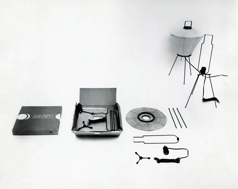 노구치는 일본어로 ‘light 빛’을 뜻하는 ‘Akari 아카리’라는 단어를 새로운 조명의 이름으로 선택함으로써 떠다니는 등불과 같은 ‘빛’과 ‘무중력 상태’ 모두를 연상시킬 수 있게 했다. 초 대신 백열전구 incandescent를 사용하면서 한층 현대화했으며, 전통적인 제작 방법을 유지해 활용함으로써 구조체를 아코디언처럼 납작하게 접을 수 있어 보관이 용이하고 이동시 간편하다는 점을 통해 상품성을 극대화시켰다. 1951년부터 Ozeki & Co. 가 제조를 담당했다.