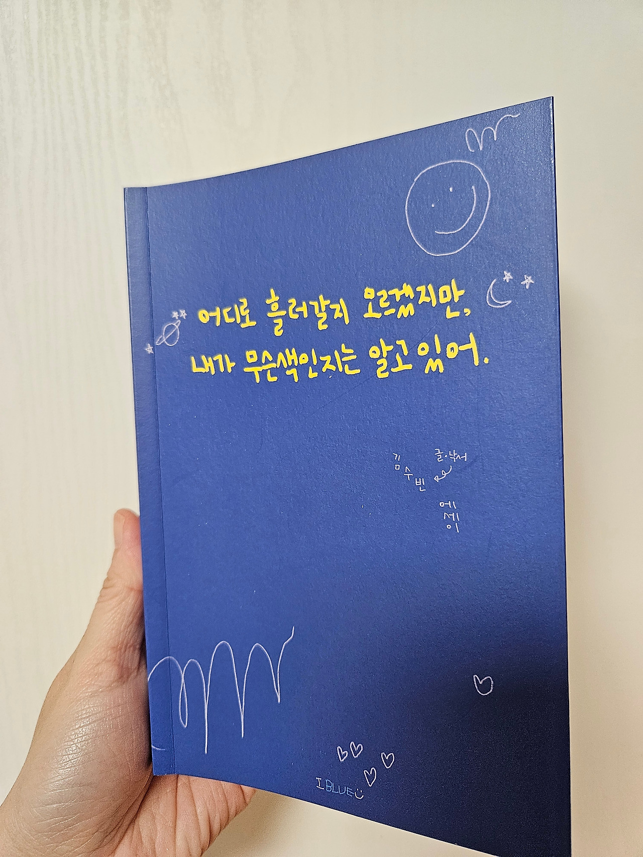 퍼블리셔스테이블에 갔다가 김수빈 작가님의 "어디로 흘러갈지 모르겠지만, 내가 무슨 색인 지는 알고 있어."라는 책을 샀다. 부스가 너무 예뻐서 홀린 듯이 다가갔다가, 책도 사고 작품에 가까운 수제공책도 샀다. 솔직하고 통통 튀는 작가님은 독자들도 책의 일부분이 되길 원하셨던 것 같다. 책 중간중간 질문들이 있고, 그에 맞춰 답을 할 수 있게 빈칸으로 되어 있는 부분들이 있었다. 이 글은 "그날의 나에게 하는 혼잣말"이라는 질문 모음을 시작으로 쓰는 글이다 :D
