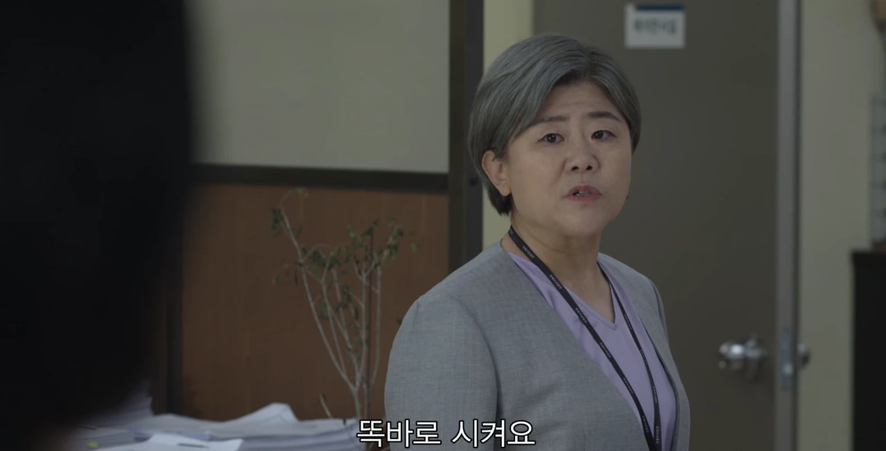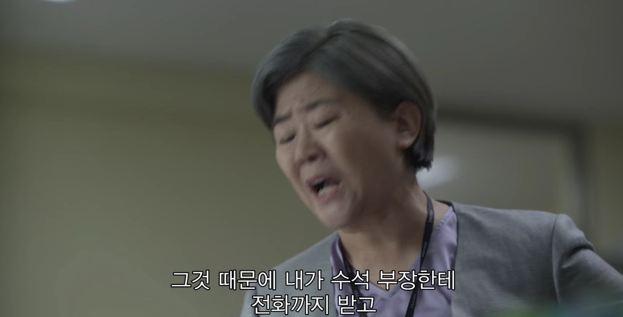 함께 일하는 실무관님들이 방송국에 전화했다고 반말로, 심지어 발로 기록수레를 차면서, 윽박을 지르는 장면