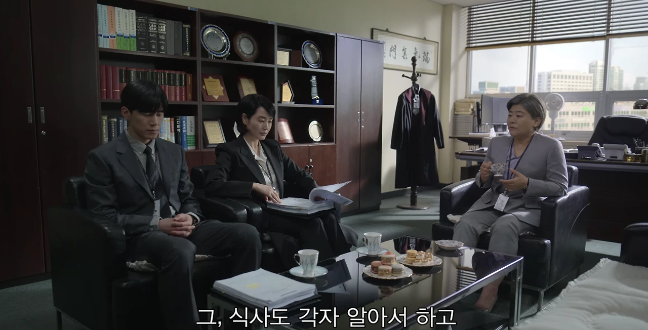 우배석인 심은석 판사에게 강원중 부장판사가 화를 내는.