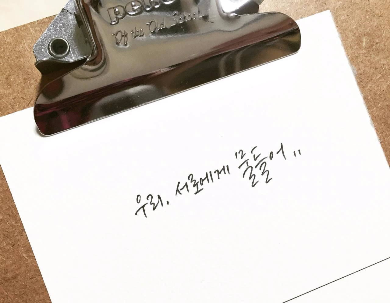 사진 속 '우리, 서로에게 물들어'는 책 '사랑 제곱'의 문구를 글씨로 적었습니다.