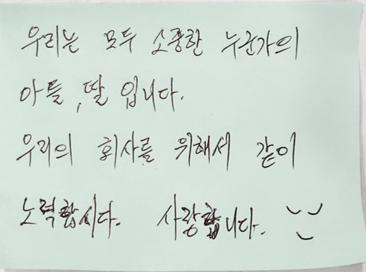 참석자 한 분이 조용히 파킹보드에 다음과 같은 메시지를 남겨 주셨어요.
