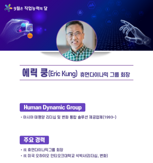 포츈 500대 기업이며 두텅운 신뢰를 받는 리더십, 변화관리 전문기업 휴먼다이나믹 아시아퍼시픽 에릭 쿵 회장의 강연. 변화하는 비즈니스 환경에서 성과 관리의 과제를 해결하고 이러한 과제를 성공적으로 해결하는 데 필요한 새로운 리더십 모델
