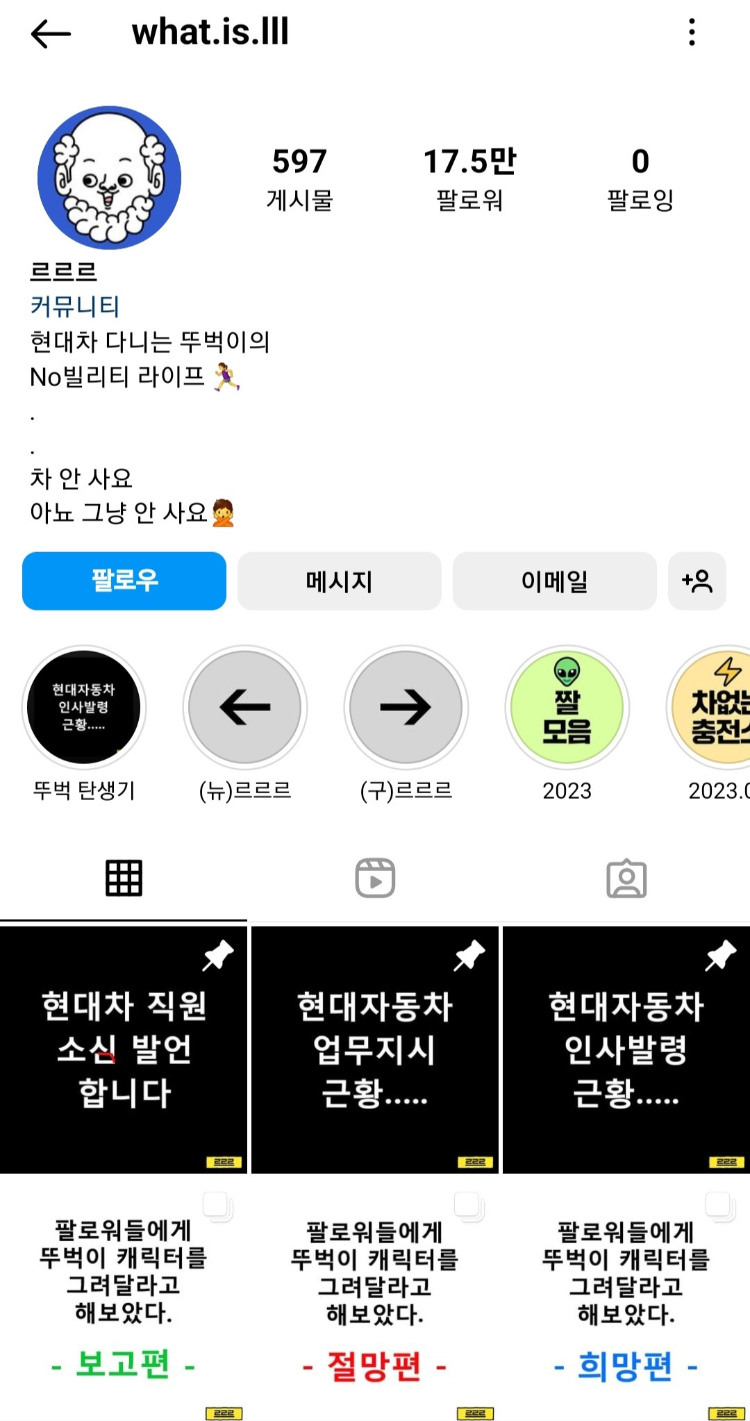 @ what.is.all|팔로워: 17.5만|소개: 현대차 다니는 뚜버기의 No빌리티 라이프
