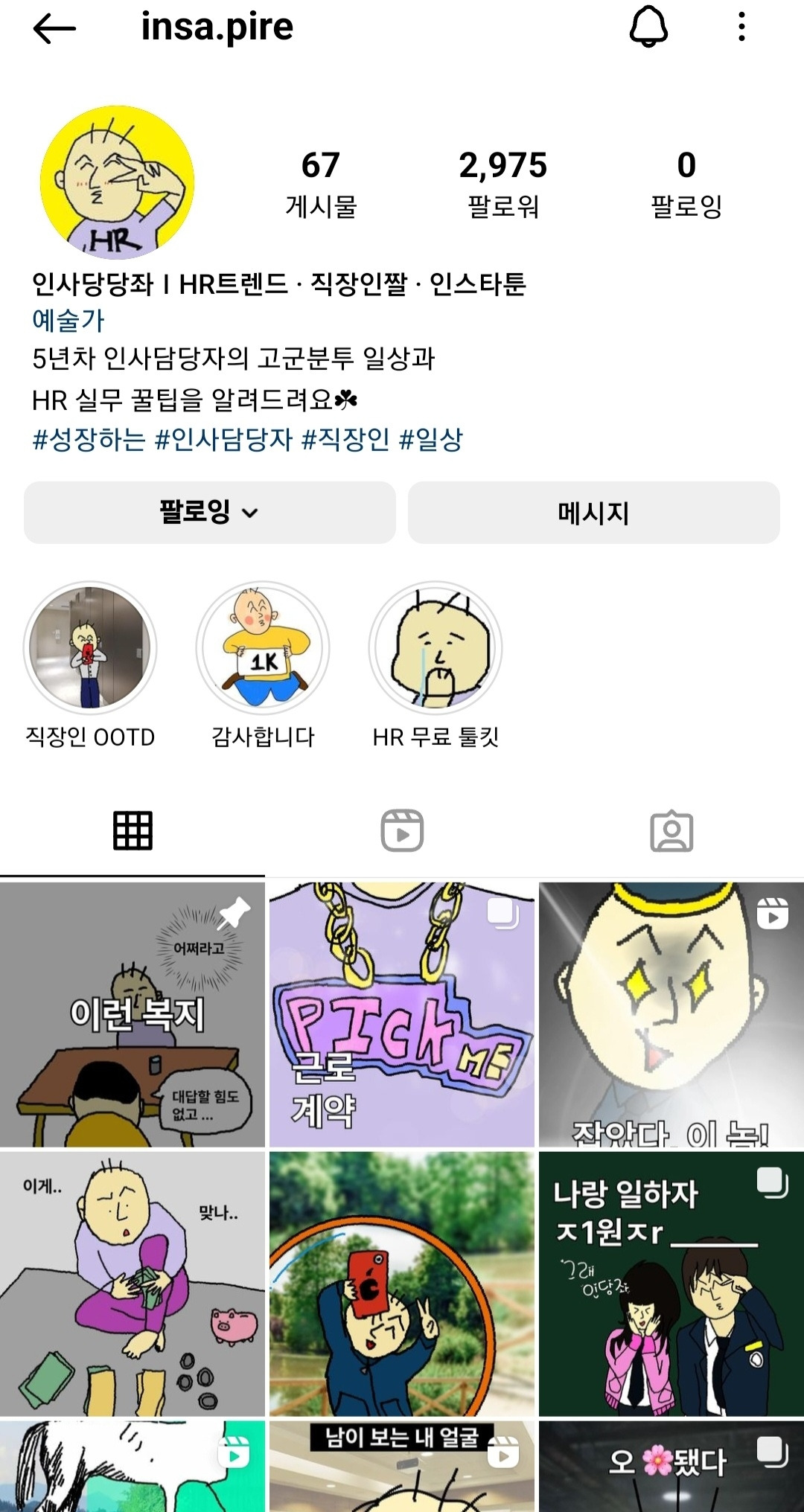 @insa.pire|팔로워: 2,975 |소개: 5년차 인사담당자의 고군분투 일상과 HR 실무 꿀팁을 알려드려요