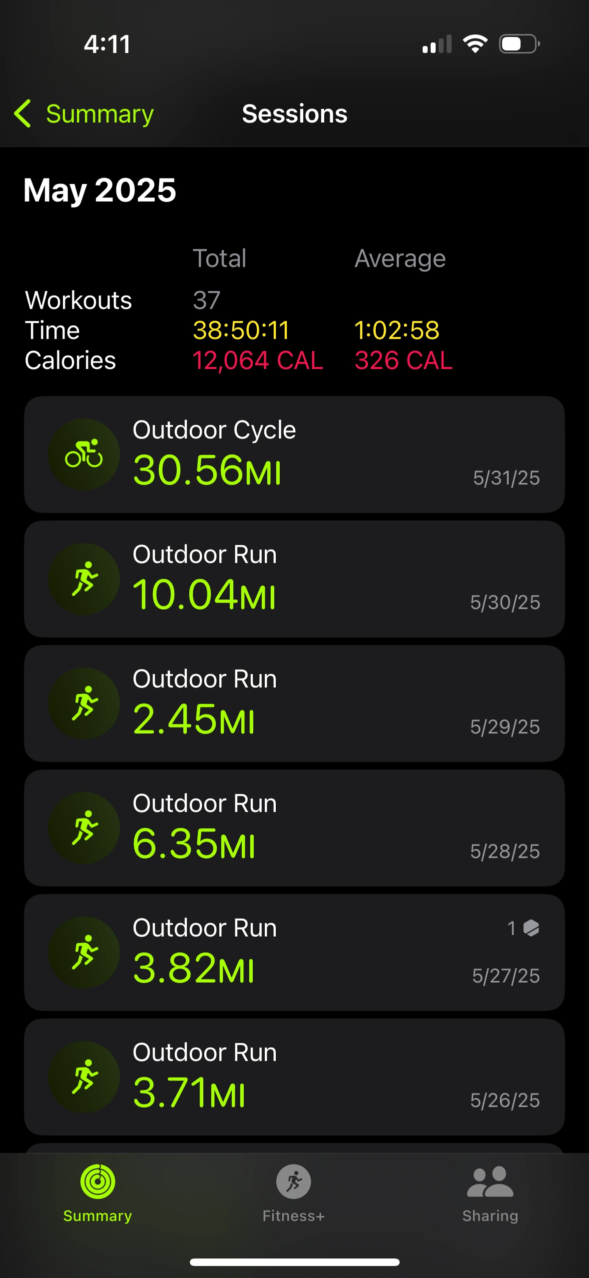 한 달 반 정도 되는 시간 동안 5K를 25번,