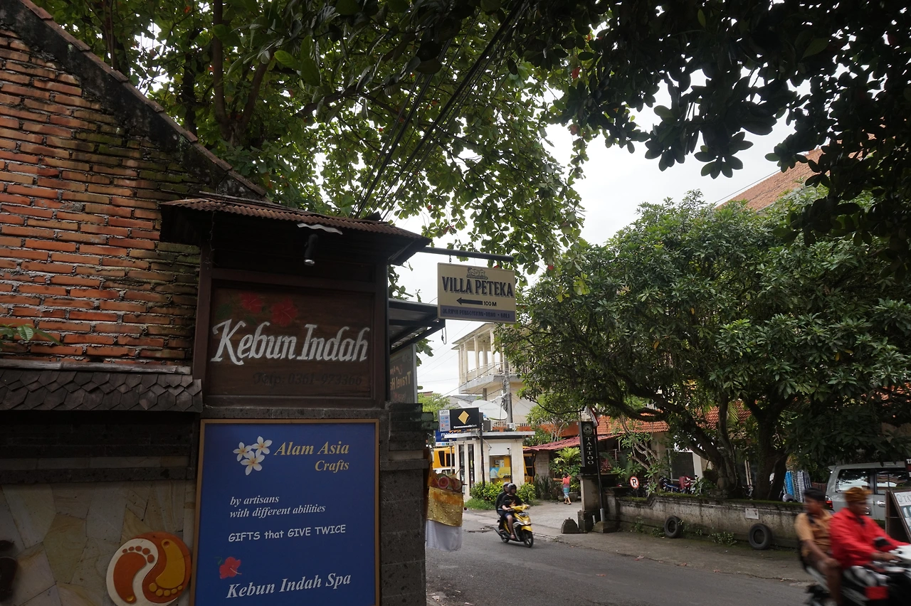 우붓 숙소 앞의 거리. 차보다는 스쿠터가 훨씬 많이 다닌다.