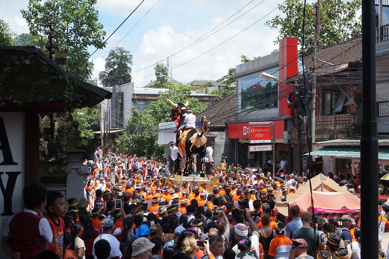 우붓의 장례 행렬. 수많은 사람들이 조형물을 가마처럼 지고 있었다.