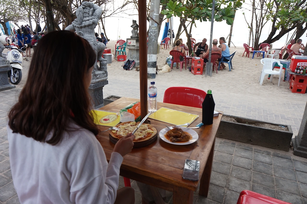 꾸따 비치(Kuta Beach)에서 발품을 팔아 다른 업체의 강습료를 알아보았다. 식사도 거의 다 해변가 식당에서 해결했다.