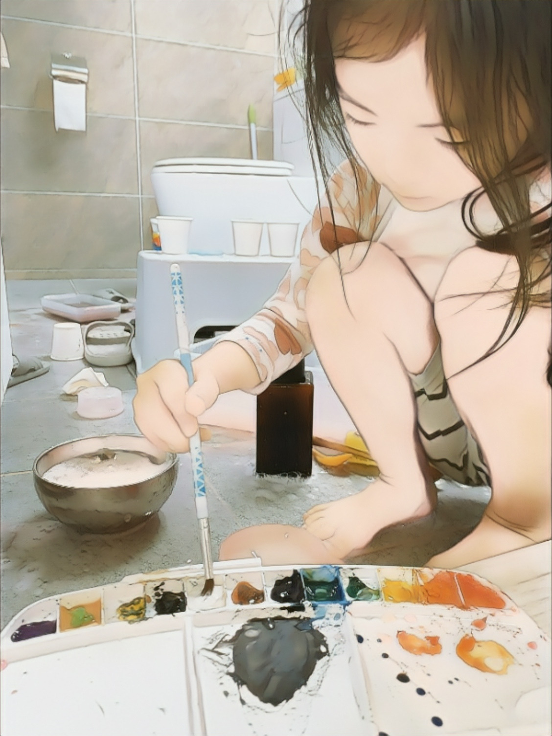 물감놀이를 들고 화장실로 간 아이는 한 시간... 두 시간...