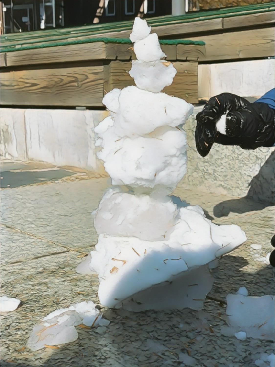 눈이 내리고 며칠 후라 그늘진 곳에는 녹던 눈이 추위에 다시 얼어붙으며 눈과 얼음의 사이쯤인 얼음눈으로 변해서 남아있었다. 아이들은 돌을 하나 주어다가 얼음을 깨기 시작했다. 이 때부터 아이의 몰입도가 최고조에 이른다. 오로지 깨고 또 깨며 얼음을 모아야한다는 집념으로 움직인다. 한참 얼음깨기에 집중하던 아이들은 얼음을 많이 모았다며 얼음 장사를 시작한다.