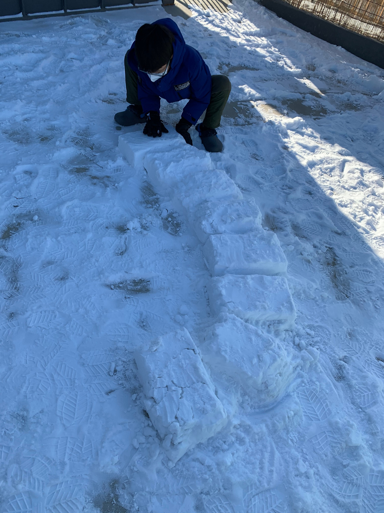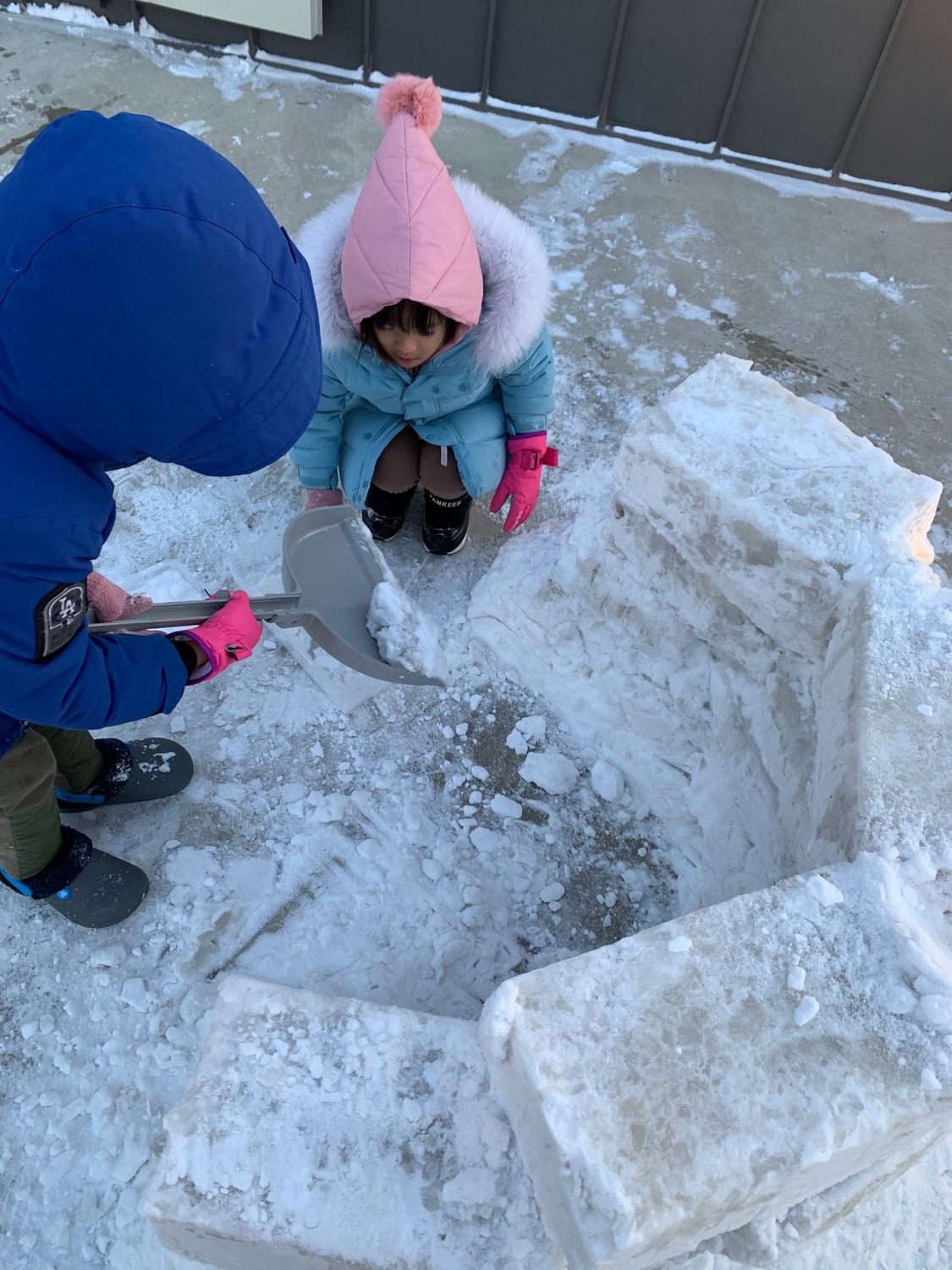 이불 안으로 들어가 몸을 녹이는 아이들을 대신해 나는 이글루를 쌓아나갔다. 30분 정도 몸을 녹인 아이들은 다시 밖으로 나와 높아진 이글루에 신이 났다. 아이들도 다시 힘을 내 눈벽돌을 만들어 쌓기 시작했다.