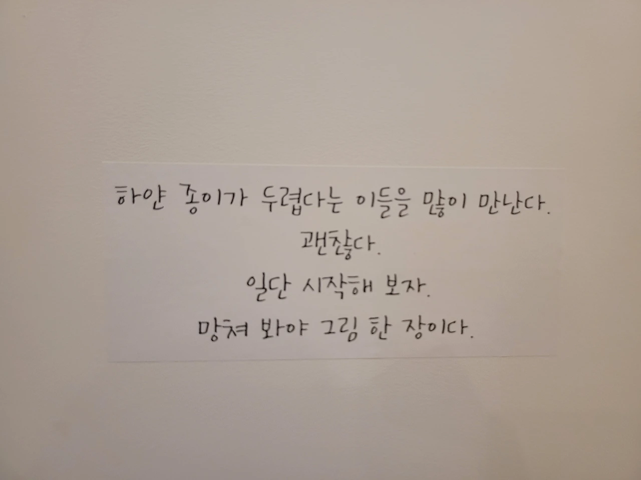 모든 놀이를 끝낸 둘째가 이제 글씨가 있는 그림책으로 시선을 옮겼다. 아직 한글을 모르는 둘째는 책을 들고 나에게 온다. 오늘은 백희나 작가의 책이 마음에 드나 보다 어려서 구름빵 연극을 봤던 기억이 있었던 걸까? 백희나 작가의 다른 작품인 알사탕, 장수탕 선녀님 등등 줄줄이 가져온다. 오늘은 이 책들로 결정했나 보다. 알사탕은 오늘 처음 읽는 책도 아니다. 지금까지 10번은 넘게 읽었고 앞으로도 10번은 넘게 읽어야 할 것 같다. 점점 목이 아파오는 나는 오빠 찬스를 쓴 후, 혼자 전시관을 둘러보며 아이들에게 집중돼있더 나의 하루도 마무리하는 시간을 가졌다.