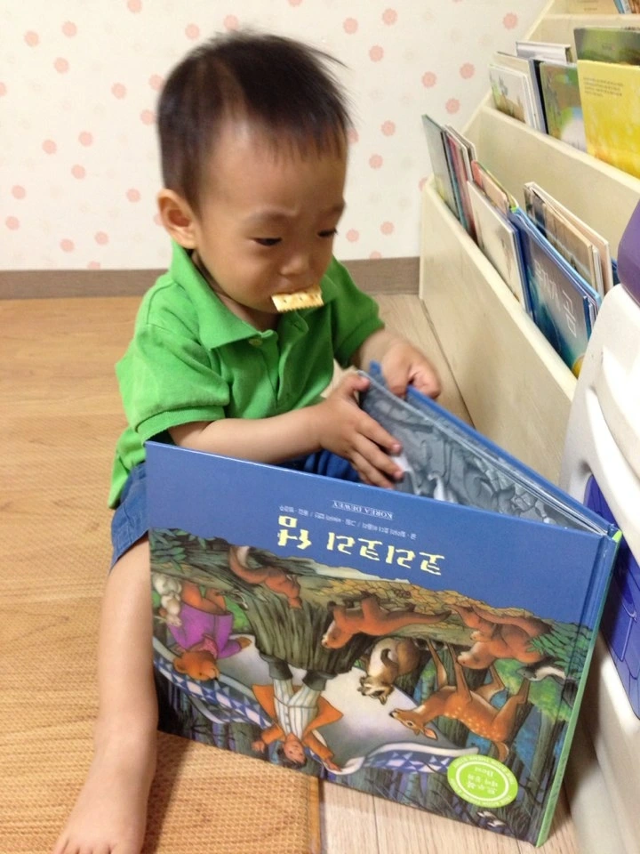 첫째는 책을 좋아한다. 아침에 일어나서 누가 시키지도 않았는데 혼자 책을 읽는다. 하루 일과 중 틈이 날 때면 이런저런 책을 찾아서 보기도 한다. 에그박사, 아르센 뤼팽, ~78층 나무집, 전천당, 십년가게, WHY? 등등 종류는 다양하다. 첫째는 돌도 되기 전부터 아빠가 동화책, 소설책, 신문 등을 가리지 않고 읽어줬었다. 그게 이유였을까? 첫째는 둘째보다 확실히 책을 좋아한다. 퇴근 후 아빠가 읽는 신문, 경제도서 등에 관심을 가지면 아빠는 소리 내어 책을 읽었고 첫째는 내용을 이해하고 듣는 거지 그저 아빠의 품이 좋았던 건지 알 수는 없지만 첫째는 가만히 안겨 아빠와 함께 책을 읽었다. 영아들에게 책은 어른들의 책과는 다른 느낌이었다. 영아기 때 아이들은 책에 무관심한 아이들은 있어도 책을 학습의 도구로 여기며 거부하는 모습은 찾아볼 수는 없다.