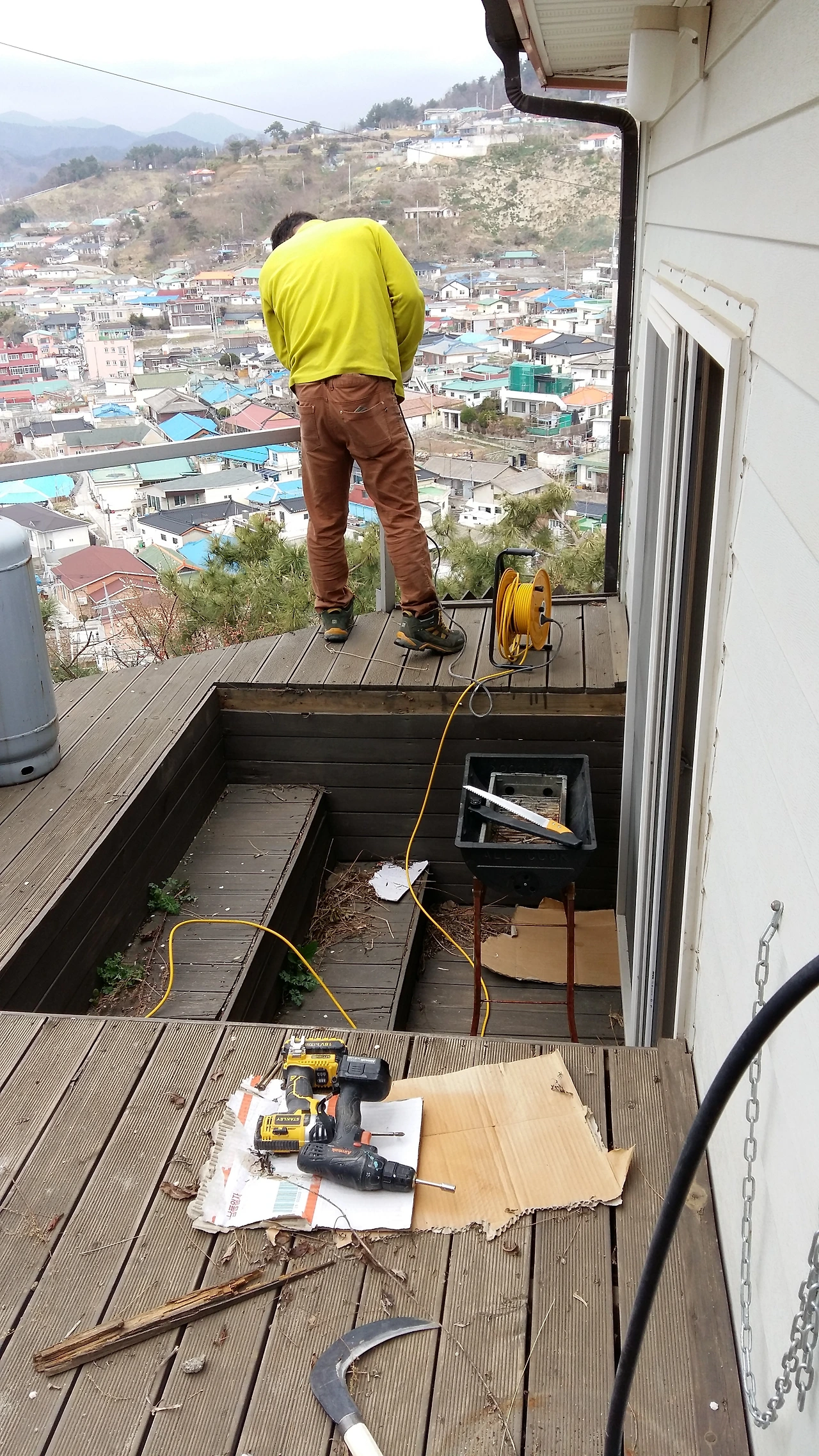 그때도 우리처럼 젊은 부부가 주인이었는데 공사 도중 아내의 임신 소식을 알게 됐다고 한다. 아내분께서 입덧을 몹시 심하게 해서 남편분도 퇴근 후엔 아내를 돌보느라 현장에 많이 나가보지는 못했다고 한다. 나중에는 어쩔 수 없이 현장 소장님에게 거의 일을 맡기게 됐는데 공사 후 나온 폐기물을 모두 치우자니 인건비가 너무 많이 나가고 그렇다고 직접 현장에 나가 치울 수 있는 상황도 아니어서 어쩔 수없이 땅에 묻어 테라스가 그렇게 높아졌다는 거다.