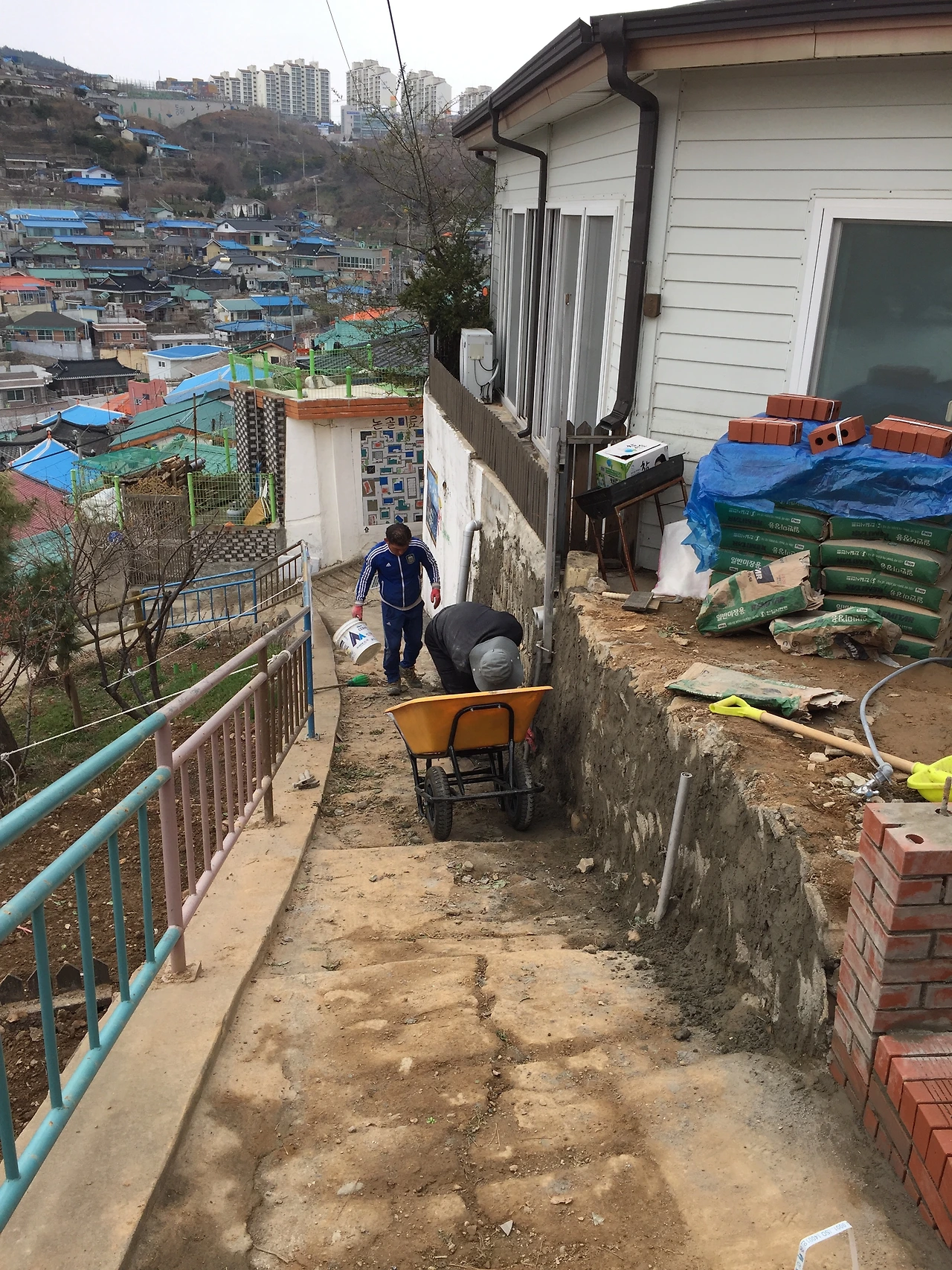리모델링의 시작은 역시 철거다. 그림도 깨끗한 도화지가 있어야 하듯 원하는 것을 채우기 위해선 비우는 일이 우선돼야 한다. 가장 먼저 철거를 시작한 곳은 테라스 공간이었는데 전에는 개인적으로만 사용하던 공간을 가능한 많은 사람들이 출입할 수 있는 오픈된 출입구로 바꾸고자 했다. 당시 테라스에서 나와 조금만 언덕을 올라가면 마을 조합이 운영하는 논골카페와 식당이 있었는데, 멋진 전망대와 함께 바다를 내려다볼 수 있는 곳이라 그 길을 따라 새로운 상권을 만드는 게 목표였다.