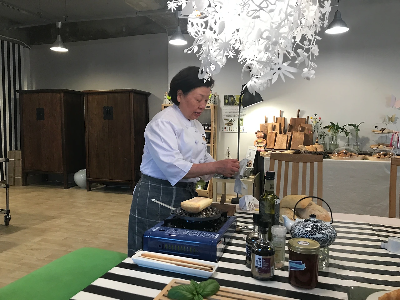 첫 미팅에 참가한 다음 날, 우리는 빵도 사고 마마님의 스튜디오도 구경할 겸 가게를 방문했다. 모임에서 만나 뵀던 터라 인사를 나누고 마마님께서 무료로 빵 반찬 시식을 해주셨는데 이런저런 얘기를 나누다 보니 마마님도 홀로 계신 노모를 모시기 위해 얼마 전 안양에서 고향인 동해로 수십 년 만에 돌아오셨다고 했다. 오래전부터 이곳에서 영업 중이신 줄 알고 있었는데 알고 보니 스튜디오는 두 달 전에 오픈하신 거였고, 젊은 시절 프랑스에서 오랜 유학 생활을 한 뒤로는 계속 서울에 있었던 터라 동해가 고향이긴 하지만 지금은 아는 사람이 거의 없는 낯선 땅이라고 하셨다.