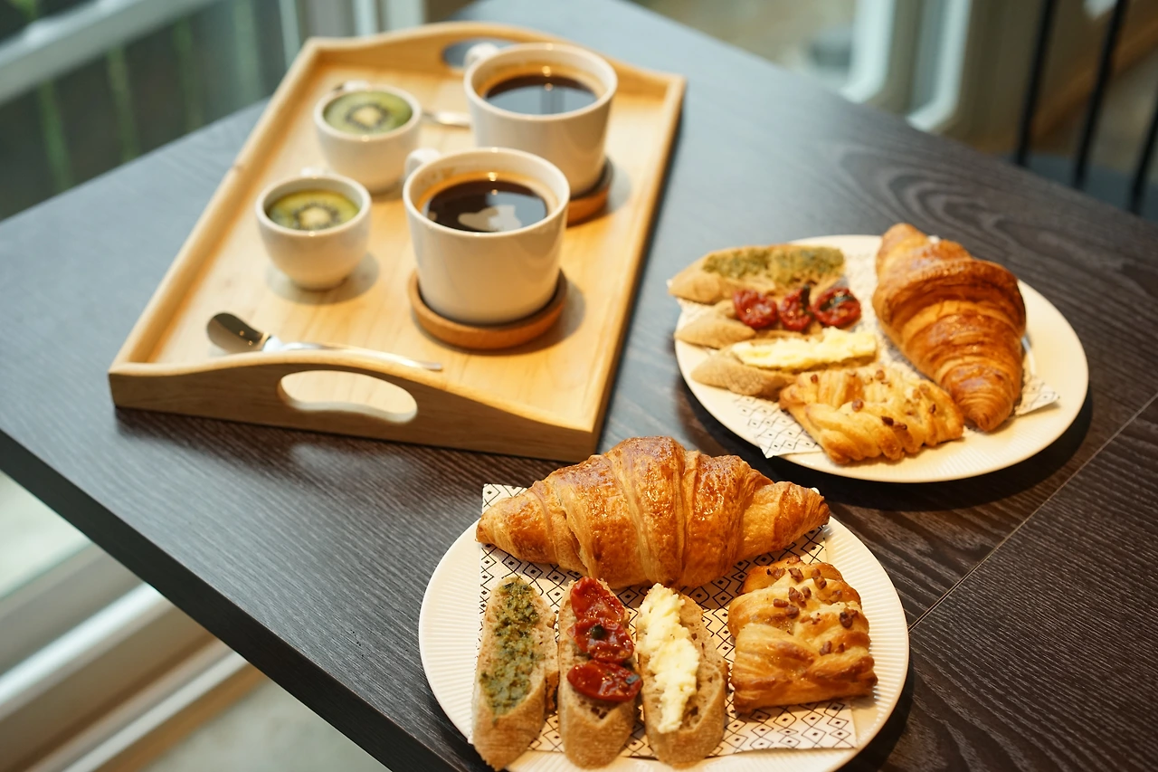 당시 중복된 업종은 가급적 피하는 게 나름의 규칙이었고 우리는 카페에서 판매할 케이크를 준비해 디저트 분야로 참석할까 했지만 한창 오픈 준비로 바쁠 때라 참석이 망설여졌다. 하지만 이를 통해 좋은 인연이 생길 것 같아 초대에 감사하는 마음으로 첫 미팅에 참석해보기로 했다. 결과적으로 당시 플리마켓은 포기하게 됐지만, 그날 미팅에 참석한 덕분에 예상했던 대로 좋은 분들을 많이 만나게 됐다. 그리고 그날의 만남 중 하나의 인연이 갓 구운 크루아상의 조식 탄생으로 이어지게 된 거다.
